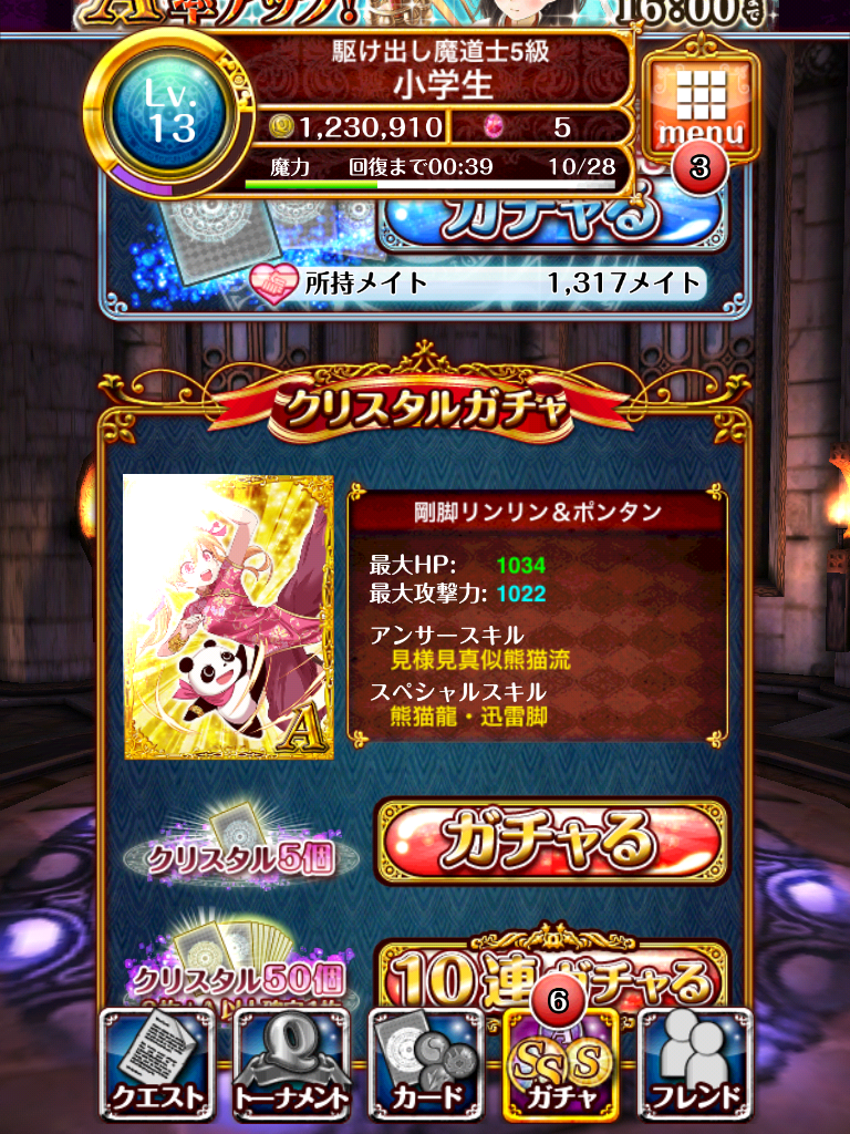 記念すべき最初のクリスタルガチャ結果は~...